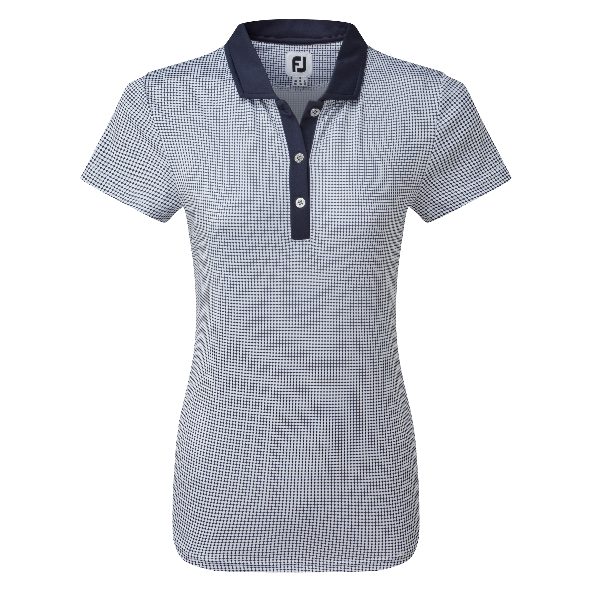 All over dot print pattern with tonal set-on placket and collar