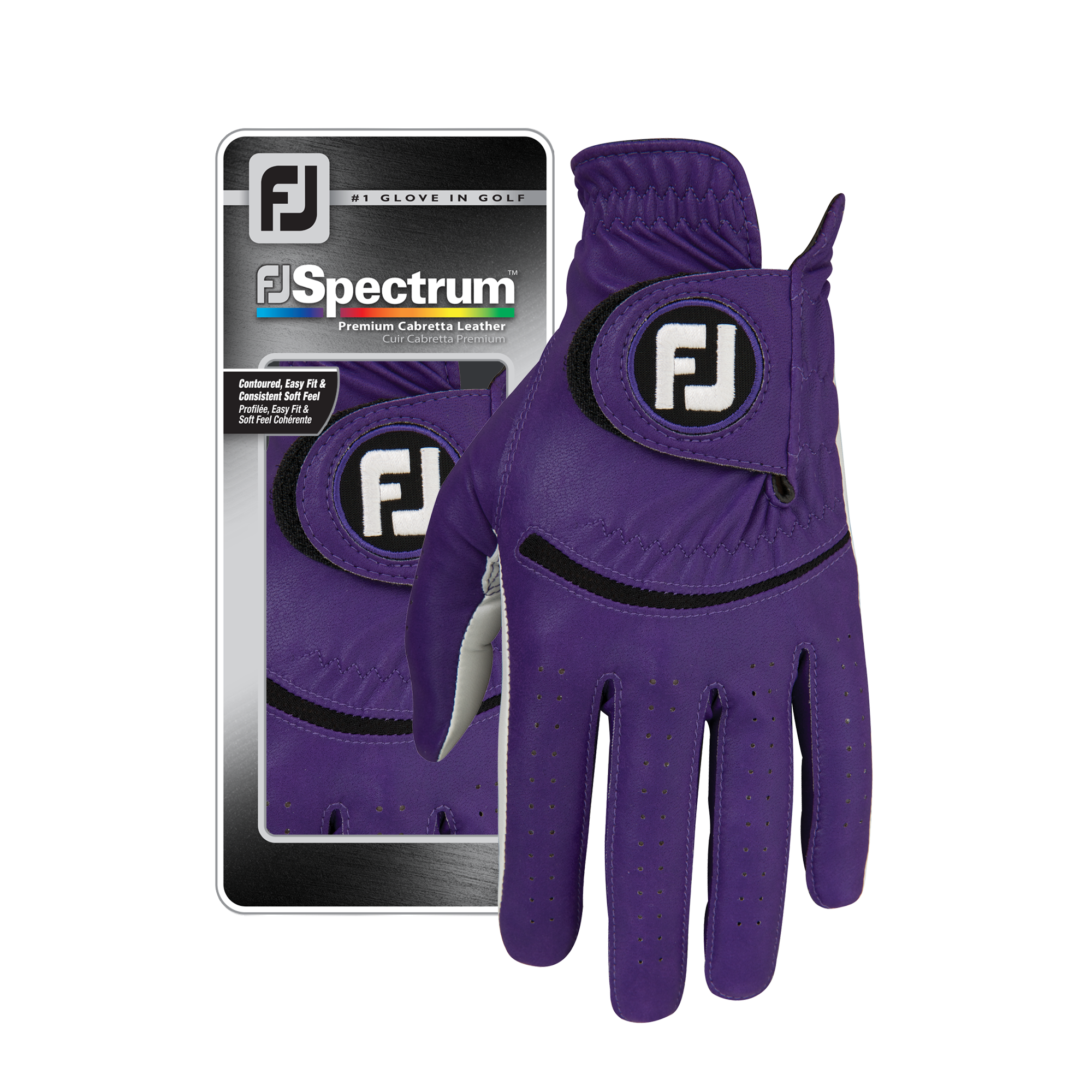 Vibrant colours abound with men's FJ Spectrum golf gloves! These Cabretta leather golf gloves come with a FiberSof back that provides a premium feel with maximum breathability and flexibility.